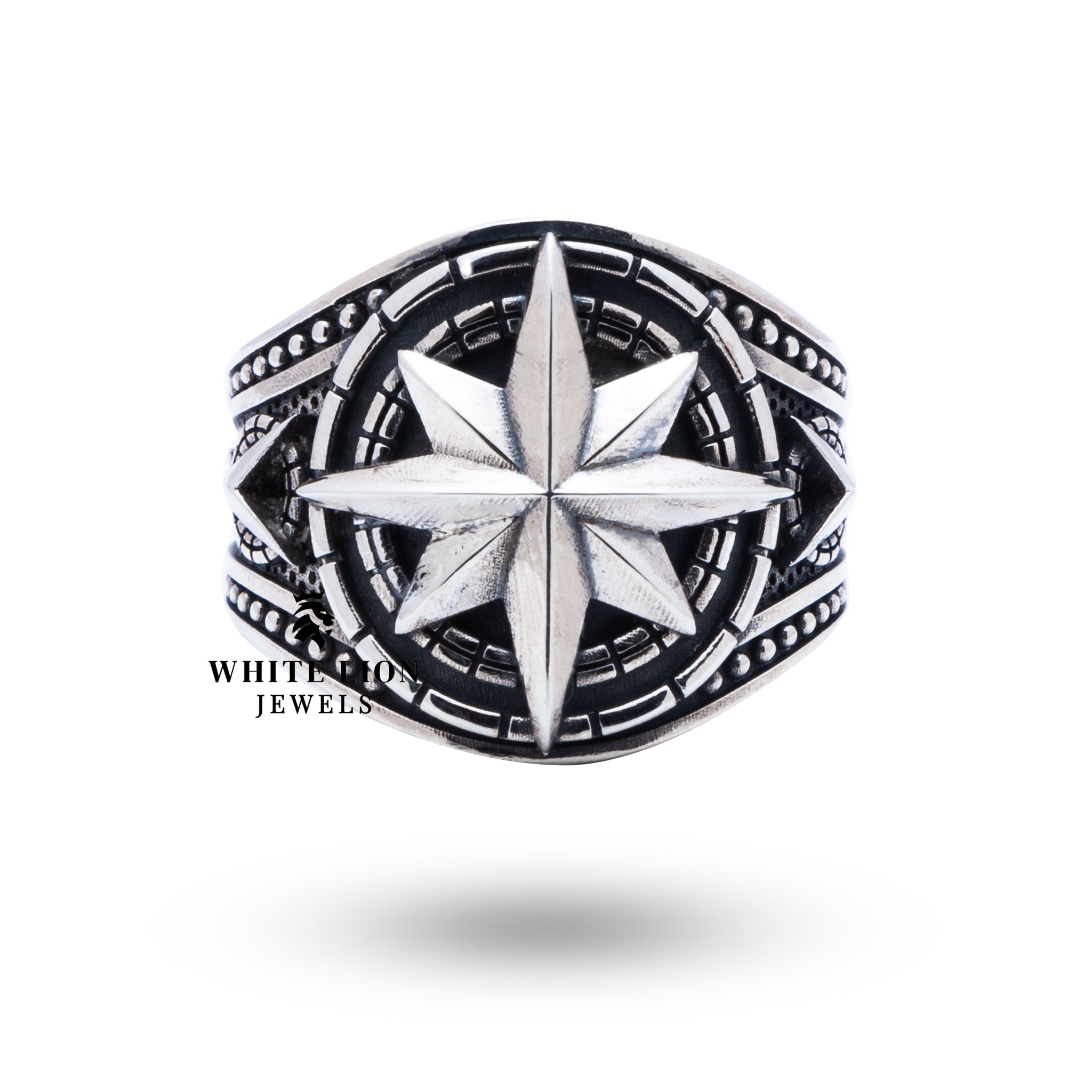 Handcrafted with meticulous attention to detail, the North Star Ring is made from high-quality 925 sterling silver, ensuring durability and a stunning finish. The oxidized silver color contrasts beautifully with the ring's smooth, circular shape, creating a unique look that stands out. Our artisans pour their passion into each piece, resulting in an extraordinary item that embodies the essence of White Lion Jewels.