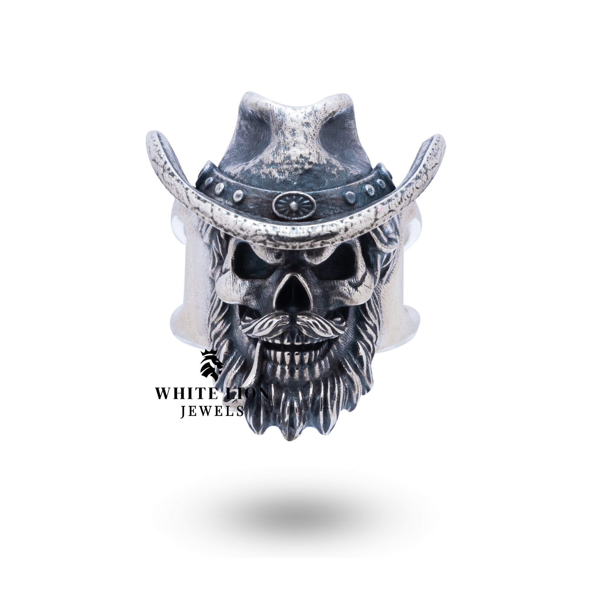 Expertly crafted from high-quality 925 sterling silver and featuring an oxidized finish, this ring exemplifies the artisanal quality that White Lion Jewels is renowned for. Our skilled artisans invest passion and precision in every detail, ensuring that each ring is a true masterpiece. The gothic skull motif serves as a powerful statement while also reflecting the intricacies of traditional craftsmanship, making this a piece that combines artistry with modern flair.