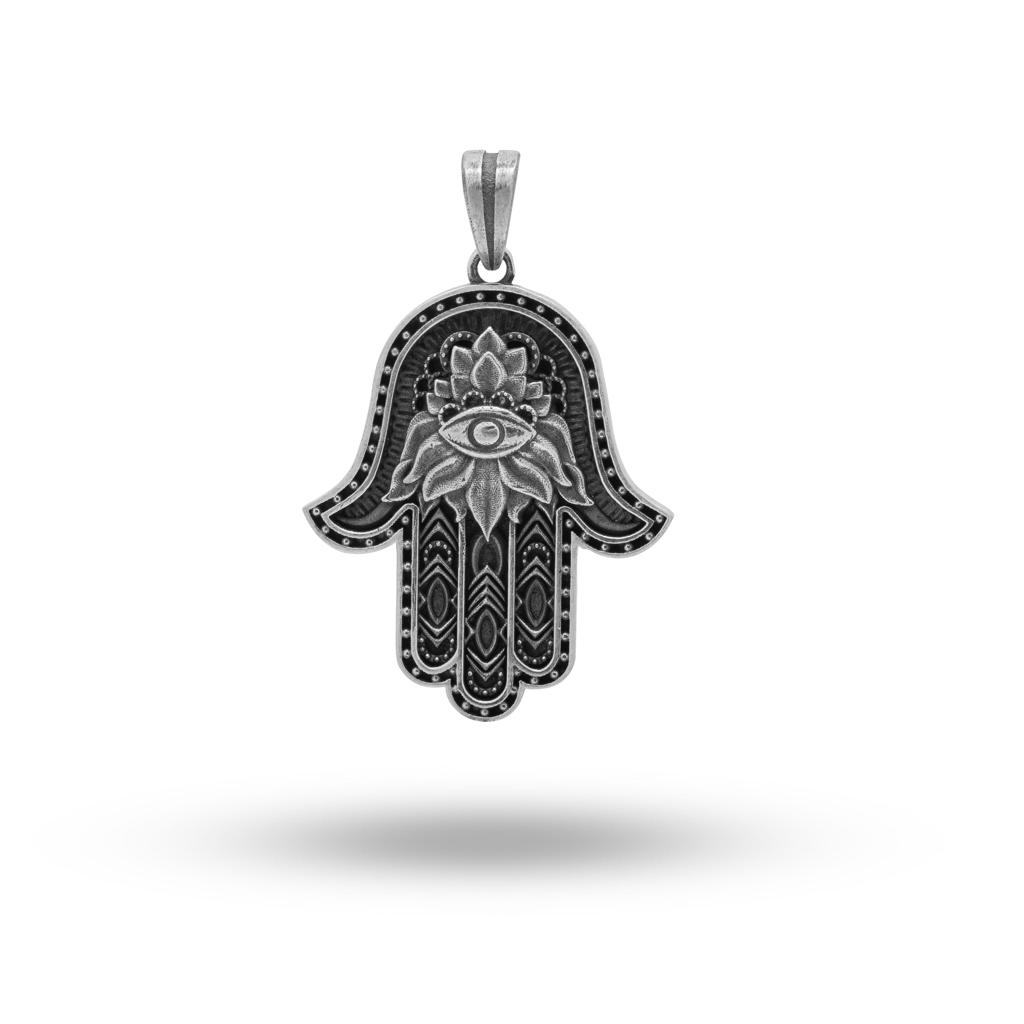 Handcrafted from 925 sterling silver and expertly oxidized to create a captivating aesthetic, this Hamsa pendant is a true testament to artisanal quality. Each piece is meticulously designed, showcasing intricate detailing and a clear protective coating that enhances its durability. The pendant's substantial weight of approximately 11.5 grams provides a luxurious feel, making it a standout accessory that brings elegance to any outfit.