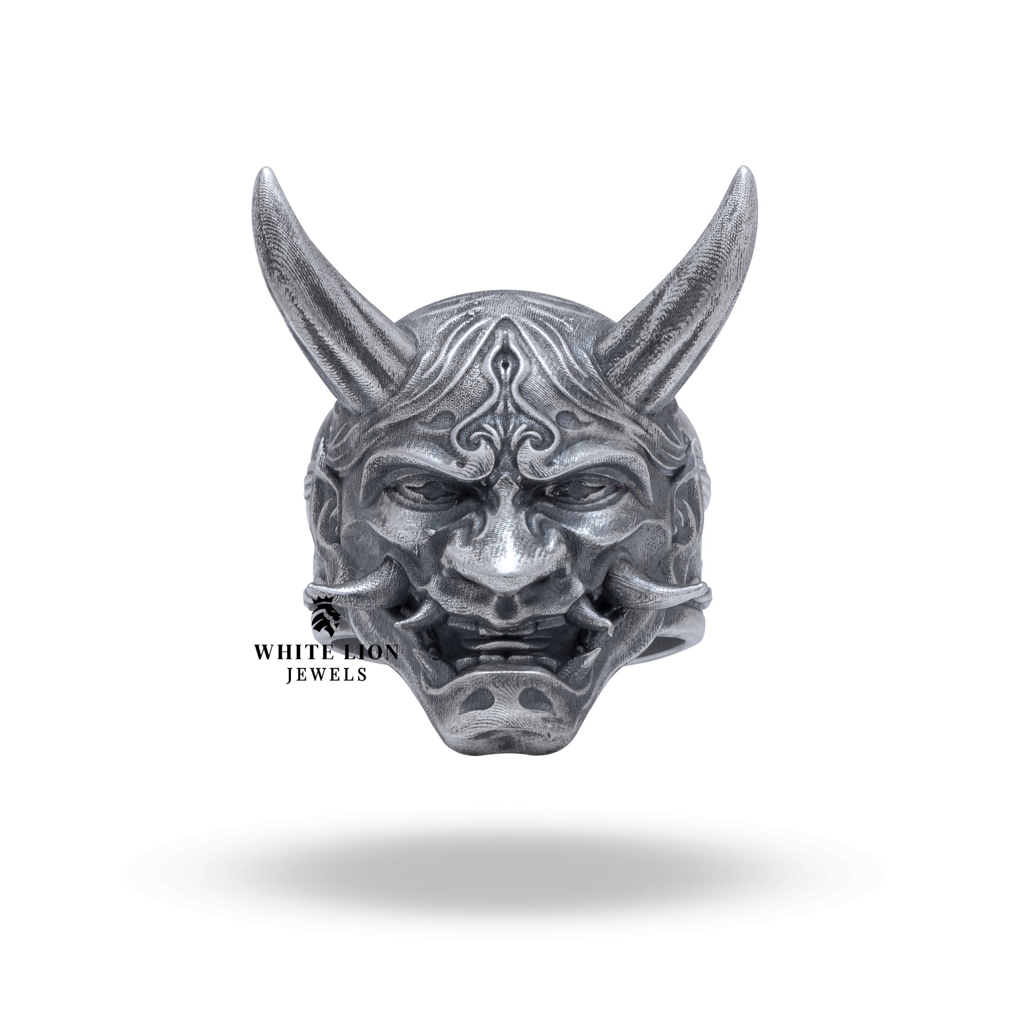 Crafted from high-quality 925 sterling silver, this ring boasts an intricate Oni mask design that reflects the mastery of our artisans. The oxidized silver finish adds depth and character, making each ring a unique statement piece. Every detail has been carefully regarded to ensure a product that is not just jewelry, but a masterpiece carved with love and passion.