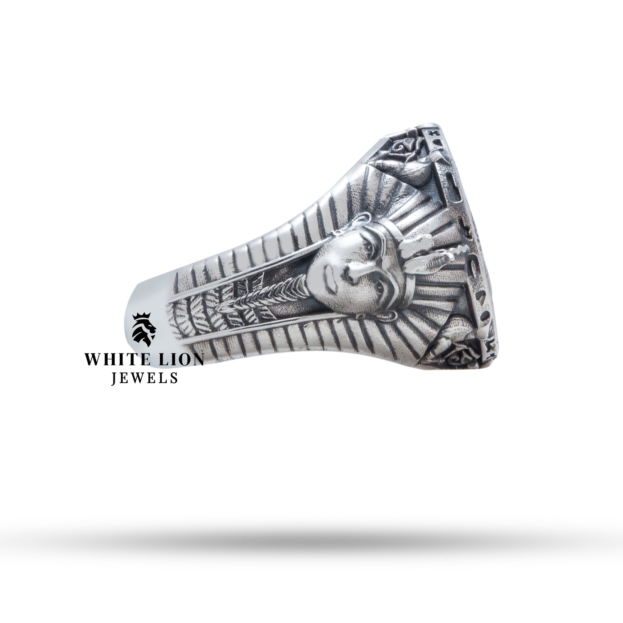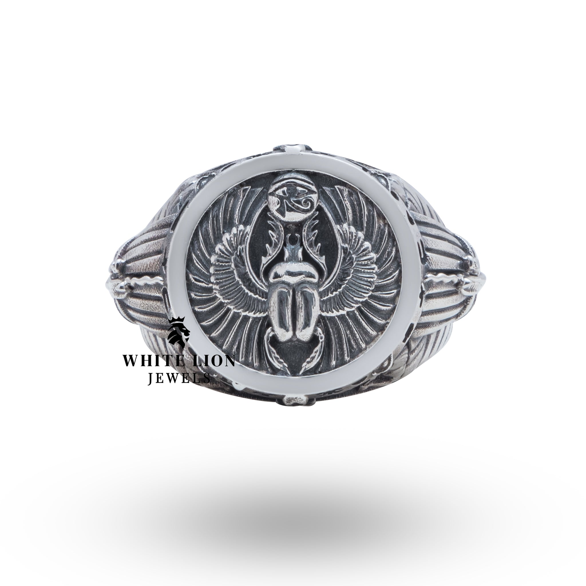 Introducing the Scarab Pharaoh Egyptian 925 Sterling Silver Ring from White Lion Jewels (WLJ), where elegance meets cultural richness. This exquisite piece is designed for those who appreciate unique jewelry that tells a story. Perfect for both enthusiasts of Egyptian history and lovers of luxury, this ring is a stunning addition to any jewelry collection.