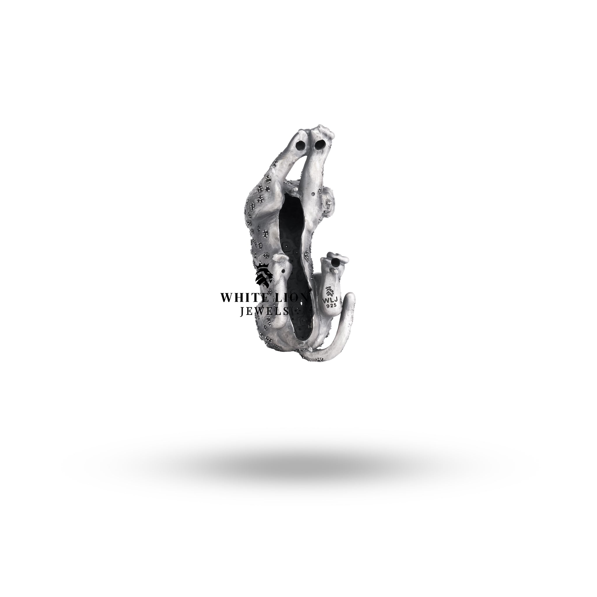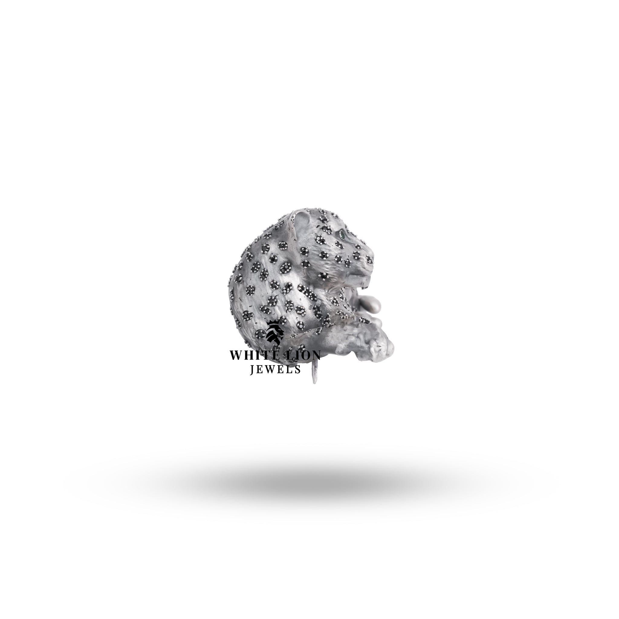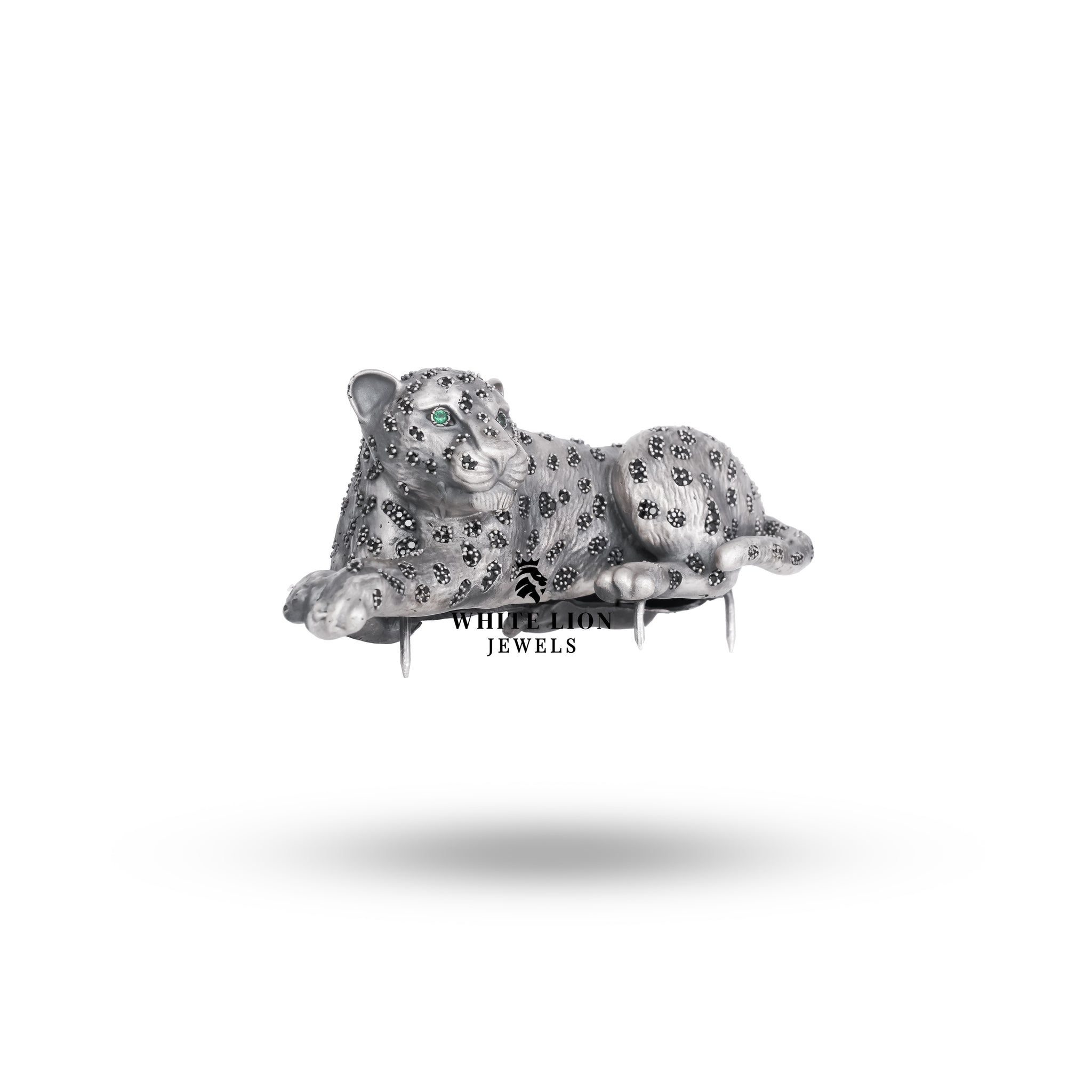 The Elegant Sitting Panther Brooch is meticulously handcrafted, showcasing the finest artisanship that White Lion Jewels is known for. The oxidized silver finish enhances the intricate details of the panther design, while the CZ stones add a touch of glamor.