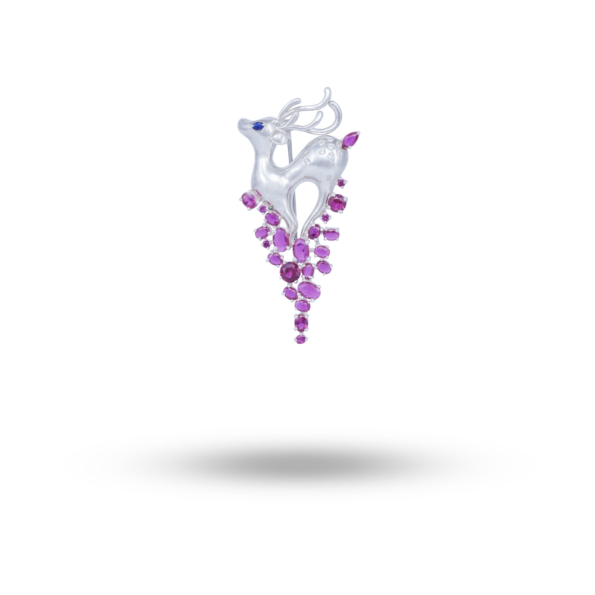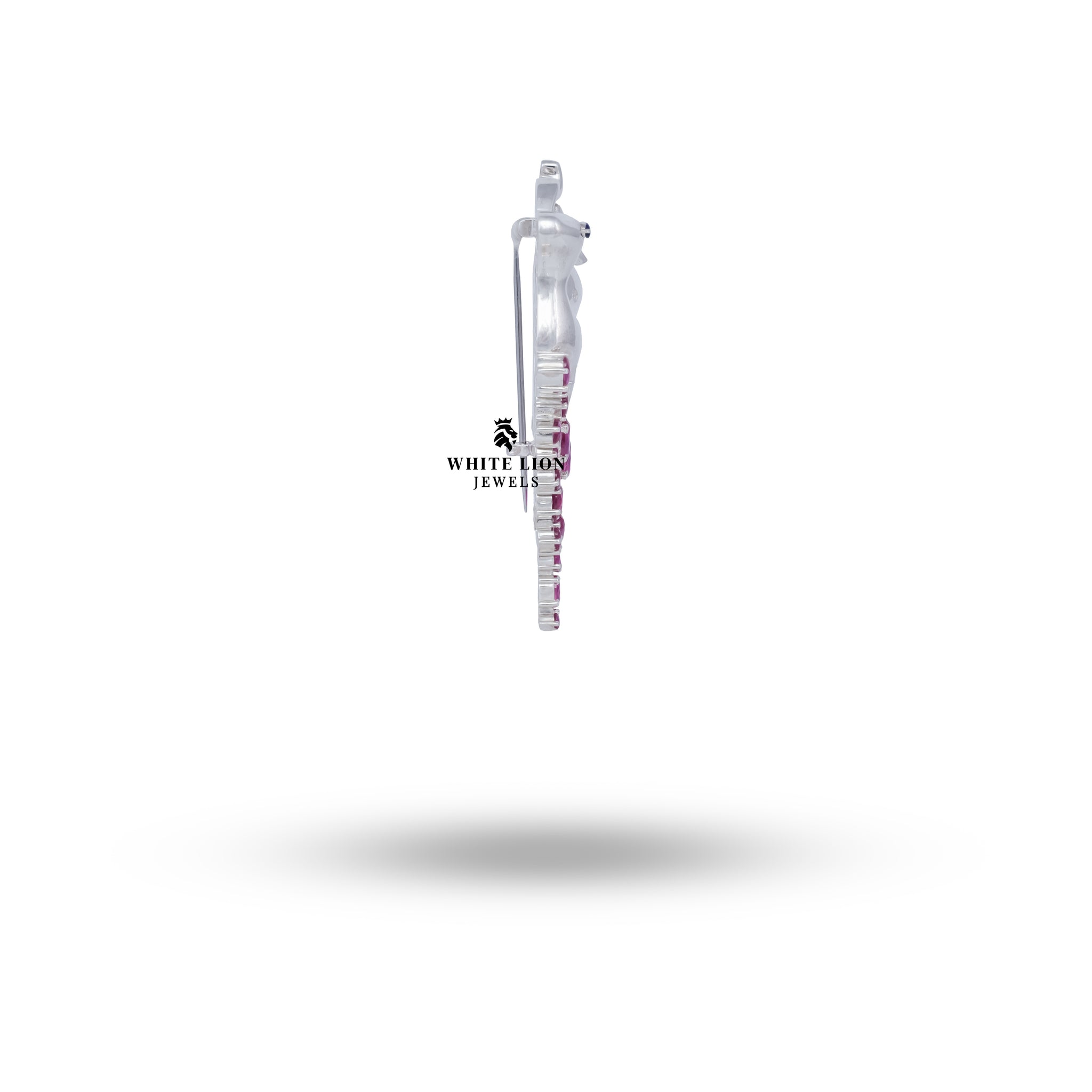 The Deer with Ruby Coloured Stones Brooch is a stunning homage to nature, showcasing intricate detailing and masterful artistry, embodying the essence of craftsmanship White Lion Jewels is famed for.