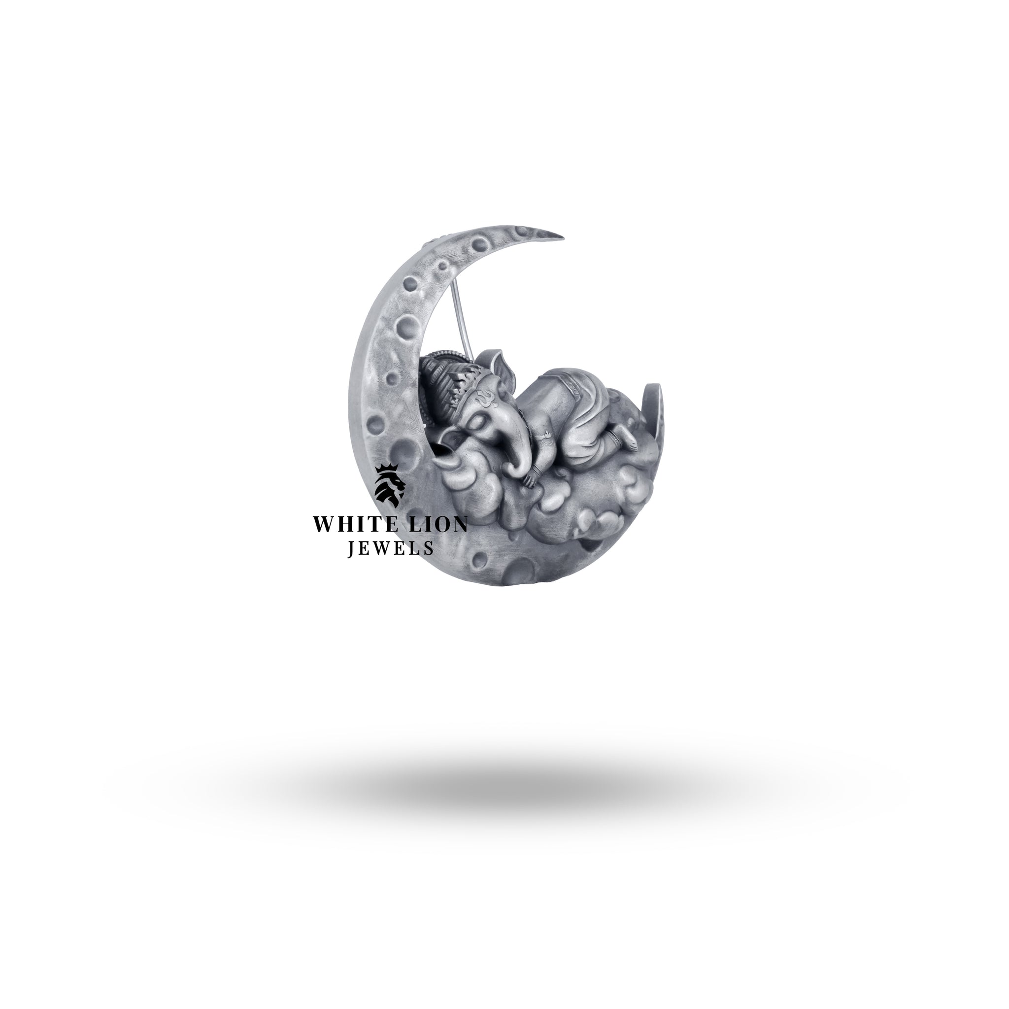 Introducing the exquisite Bal-Ganesha on the Moon 925 Sterling Silver Brooch by White Lion Jewels, a stunning piece that beautifully blends spirituality with elegance. This brooch is perfect for the discerning individual who appreciates unique jewelry that tells a story and enhances their style.