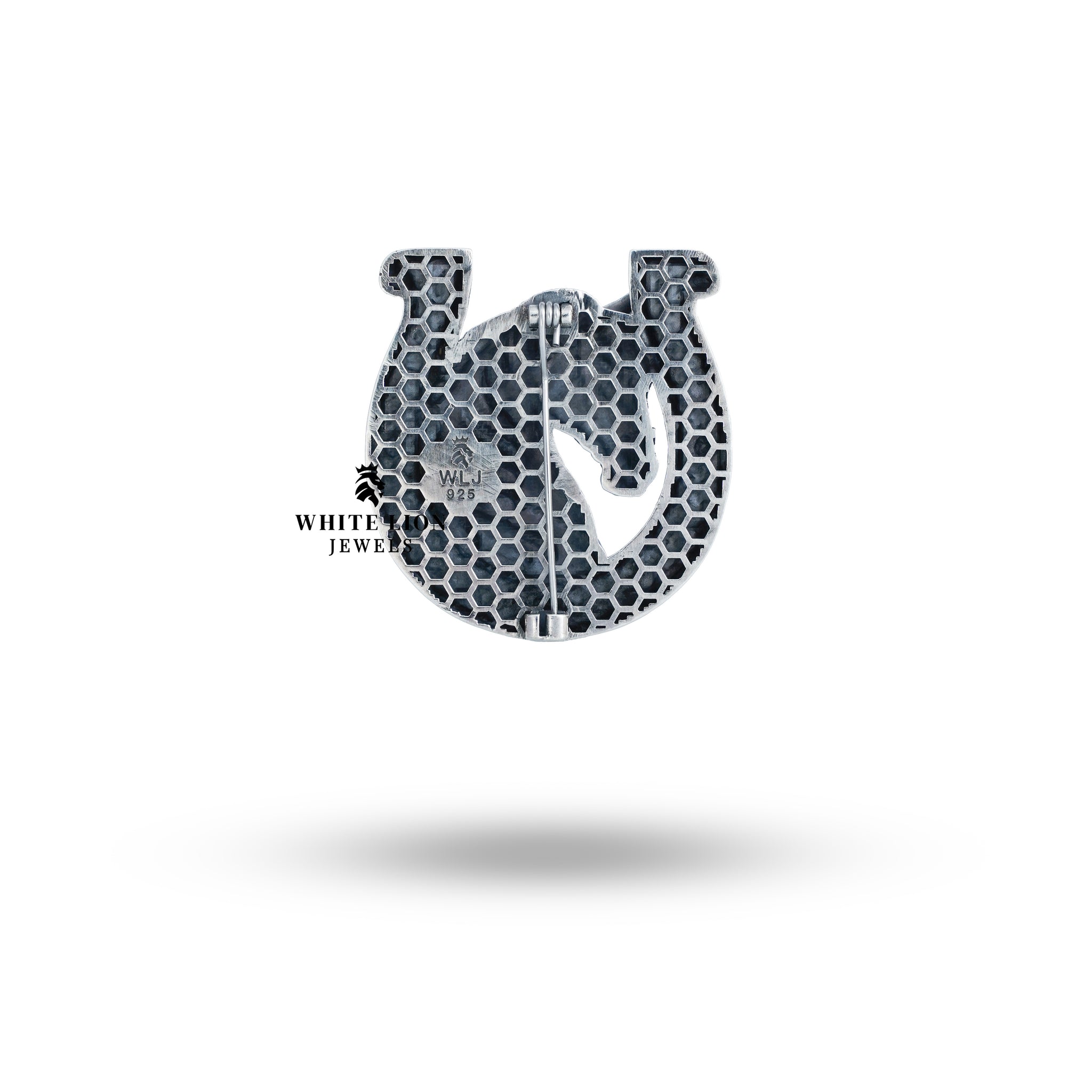 Introducing the Elegant Horse and Shoe Nail - Naal 925 Sterling Silver Brooch, a stunning blend of modern vintage style and timeless elegance. This brooch is perfect for those who appreciate unique jewelry pieces that tell a story. Crafted for both equestrian enthusiasts and fashionable individuals alike, it seamlessly elevates any outfit.