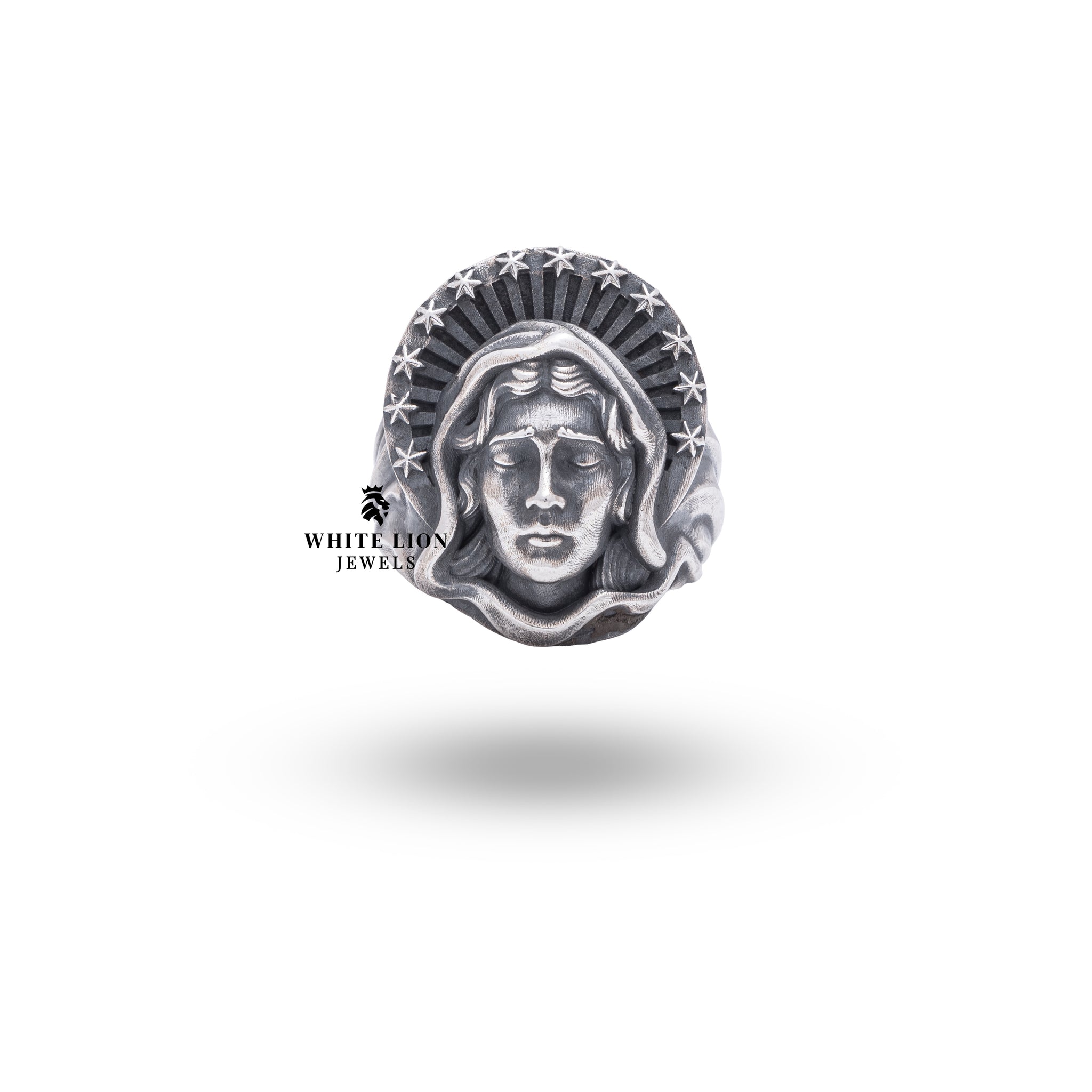Experience the timeless elegance of the Virgin Mother Mary 925 Sterling Silver Ring from White Lion Jewels. This exquisite piece is designed for those who appreciate intricate craftsmanship and spiritual symbolism. Perfect for both everyday wear and special occasions, it resonates with individuals seeking to express their faith elegantly and stylishly.
