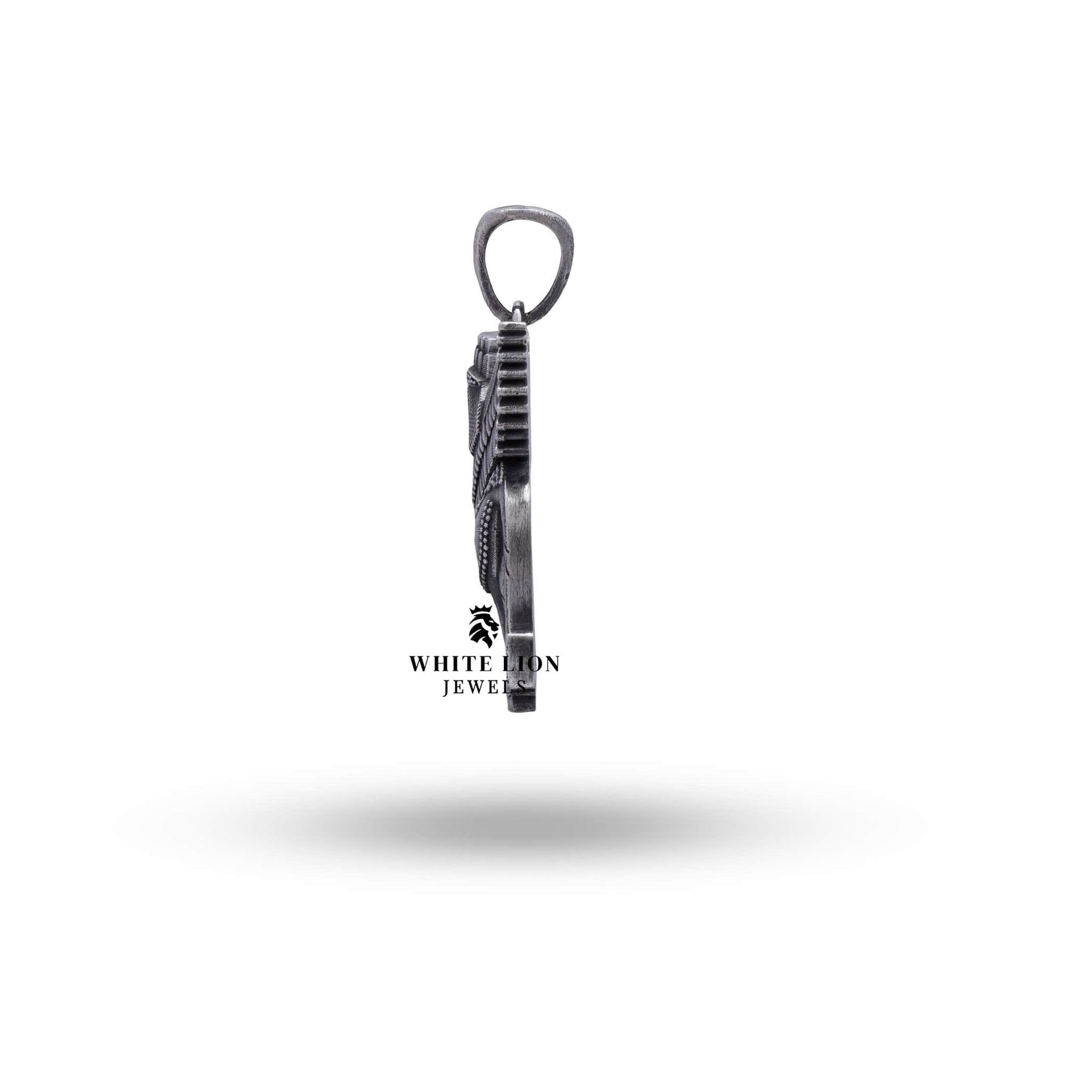 Each Lamassu Pendant is a testament to the meticulous craftsmanship synonymous with White Lion Jewels. This piece features intricate details that honor the ancient Assyrian symbol, designed to emulate the majesty of the mythical winged bull. The oxidized silver finish adds depth and character, making each pendant a unique masterpiece that truly stands out.