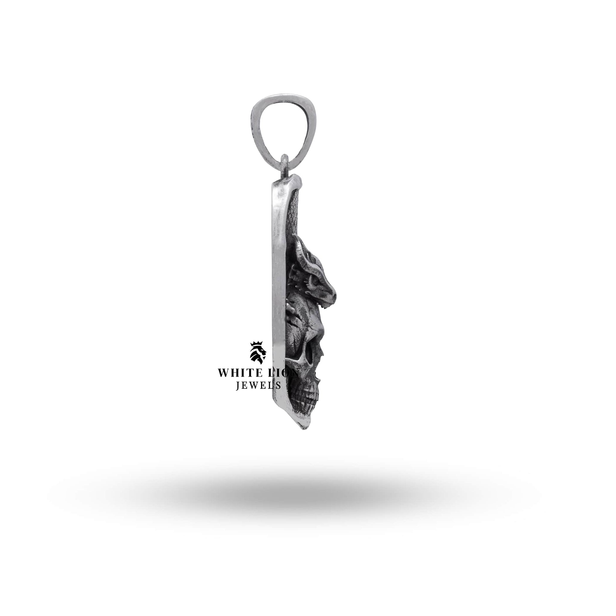 Every piece of jewelry from White Lion Jewels is a testament to unparalleled artisanal quality and design. The Dragon Wings Skull Pendant is meticulously handcrafted using high-quality 925 sterling silver, ensuring durability and lasting beauty. The intricate detailing of the skull and wings showcases exceptional craftsmanship, while the oxidized silver finish enriches the piece with depth and character. This stunning pendant is not just an accessory; it’s a unique piece of art that tells a story.