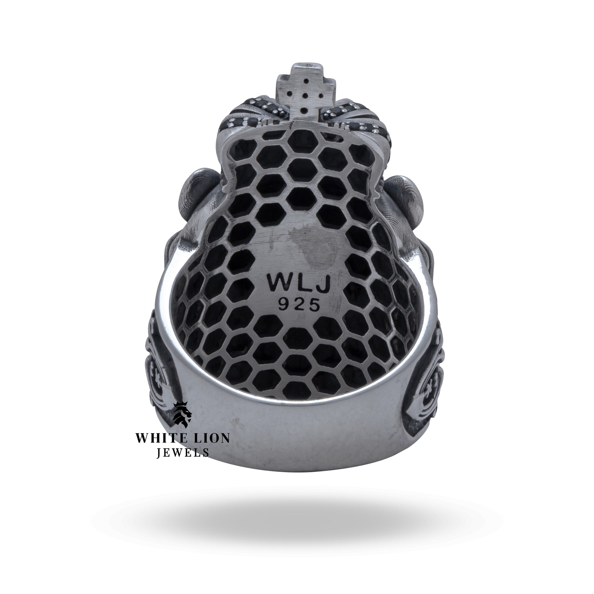 Handcrafted with precision, the Calm Lion King Crown ring is made of 925 sterling silver, celebrated for its quality and durability. The oxidized silver finish provides a captivating depth that enriches the design, while the intricate lion crown motif symbolizes majesty and self-assurance. Each detail has been meticulously crafted, making this ring not only a fashionable accessory but also a remarkable work of art.