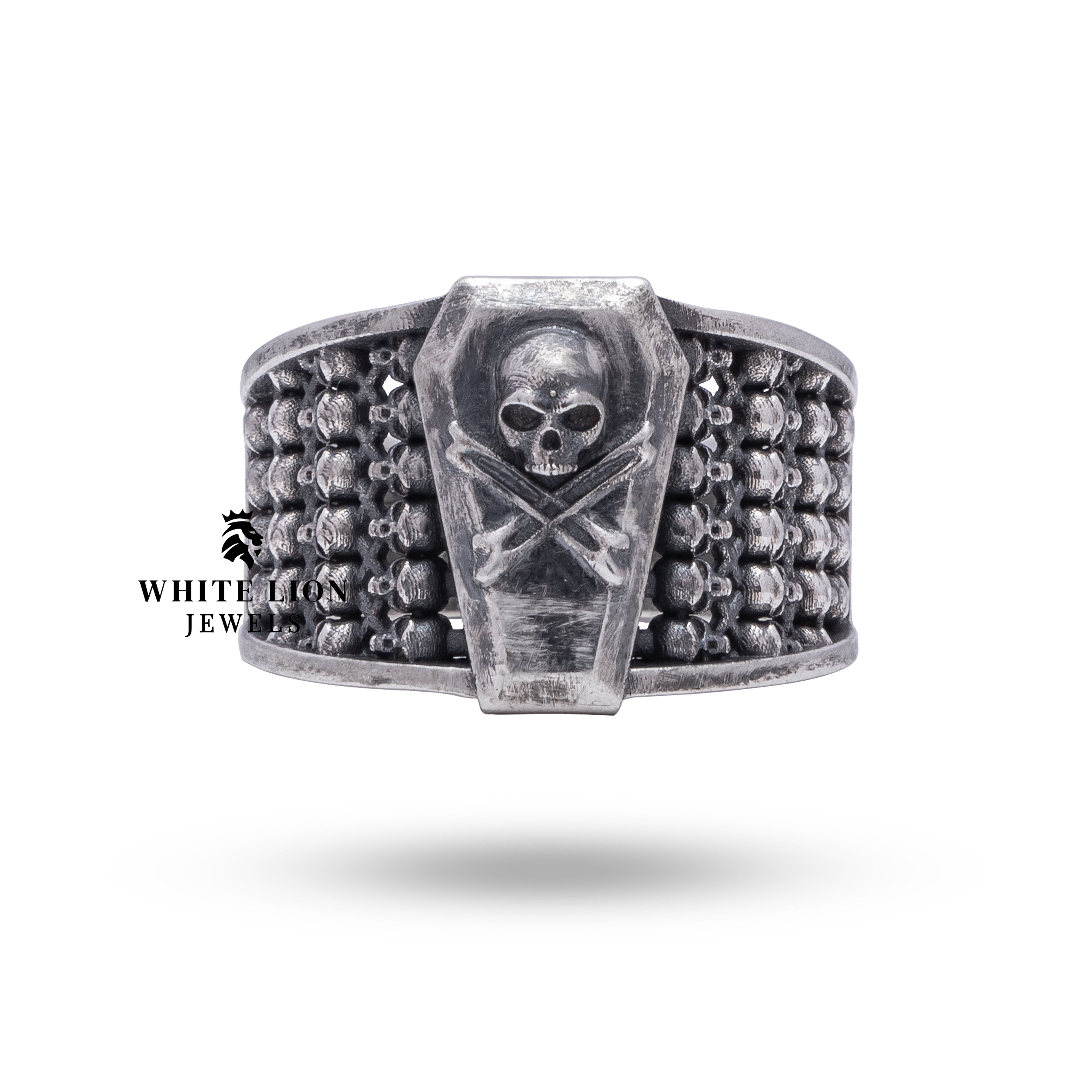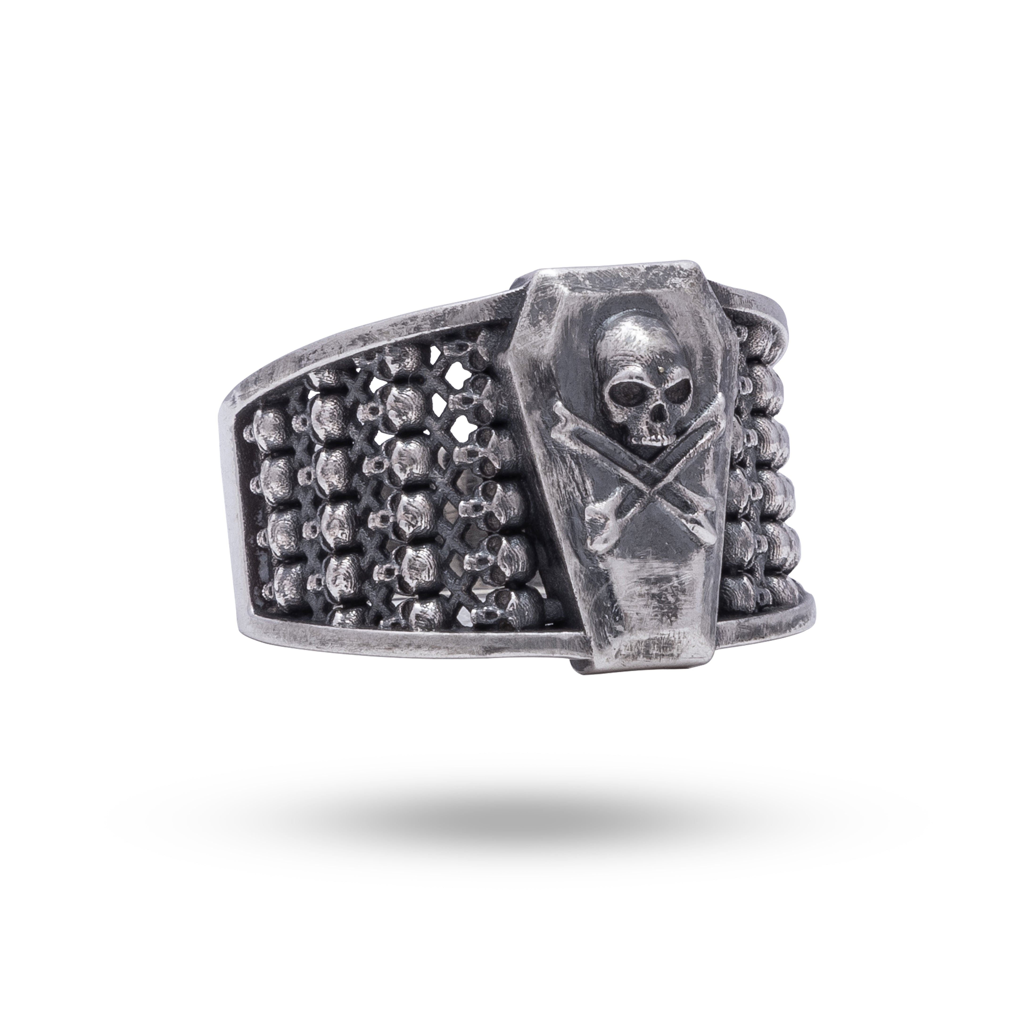 Coffin Dead Box Skulls 925 Sterling Silver Ring