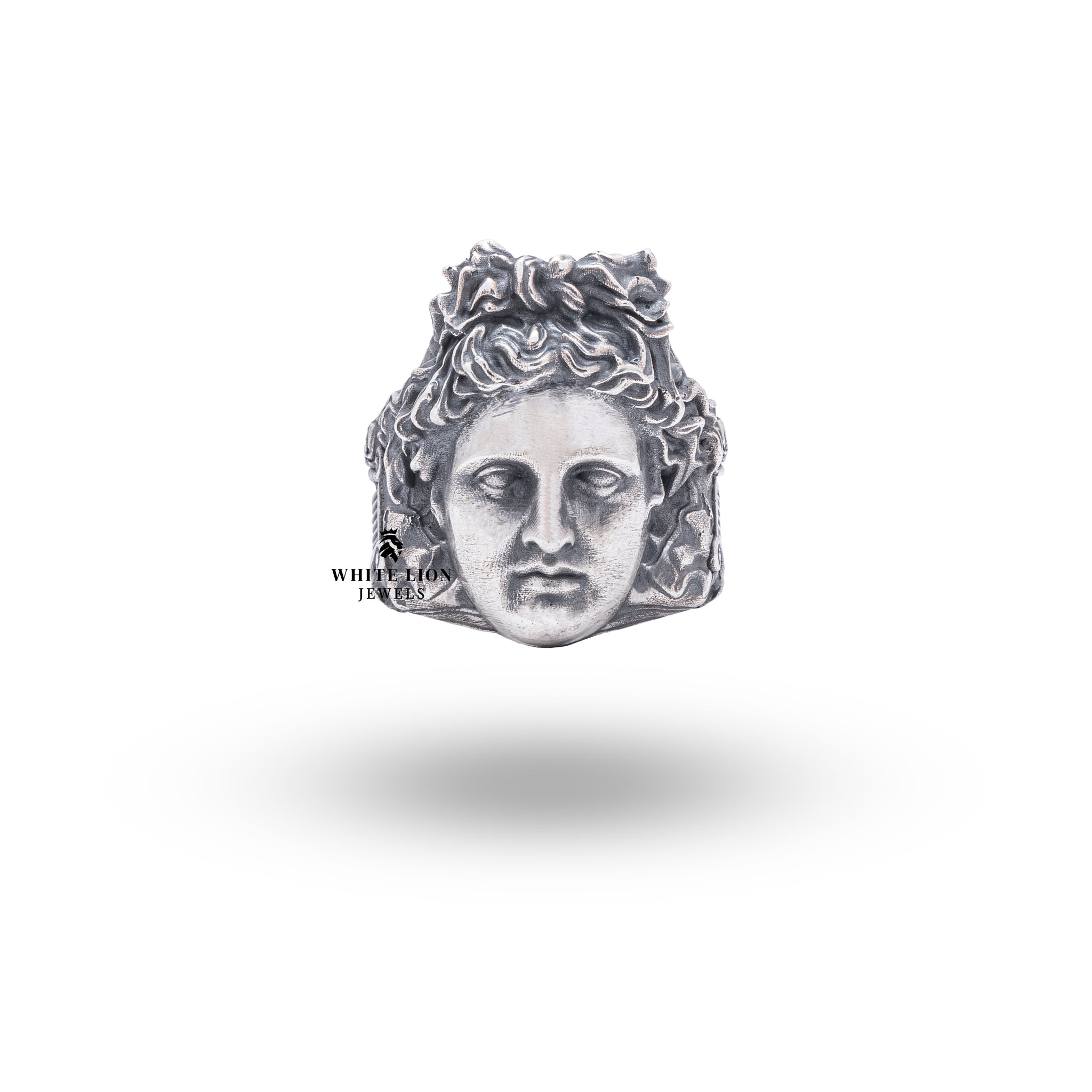Discover the exquisite elegance of the Greek God Apollo 925 Sterling Silver Ring, a perfect embodiment of luxury and sophistication. Crafted for those who appreciate fine jewelry, this stunning ring is a timeless addition to any collection, celebrating the rich legacy of artistry and design that White Lion Jewels represents.