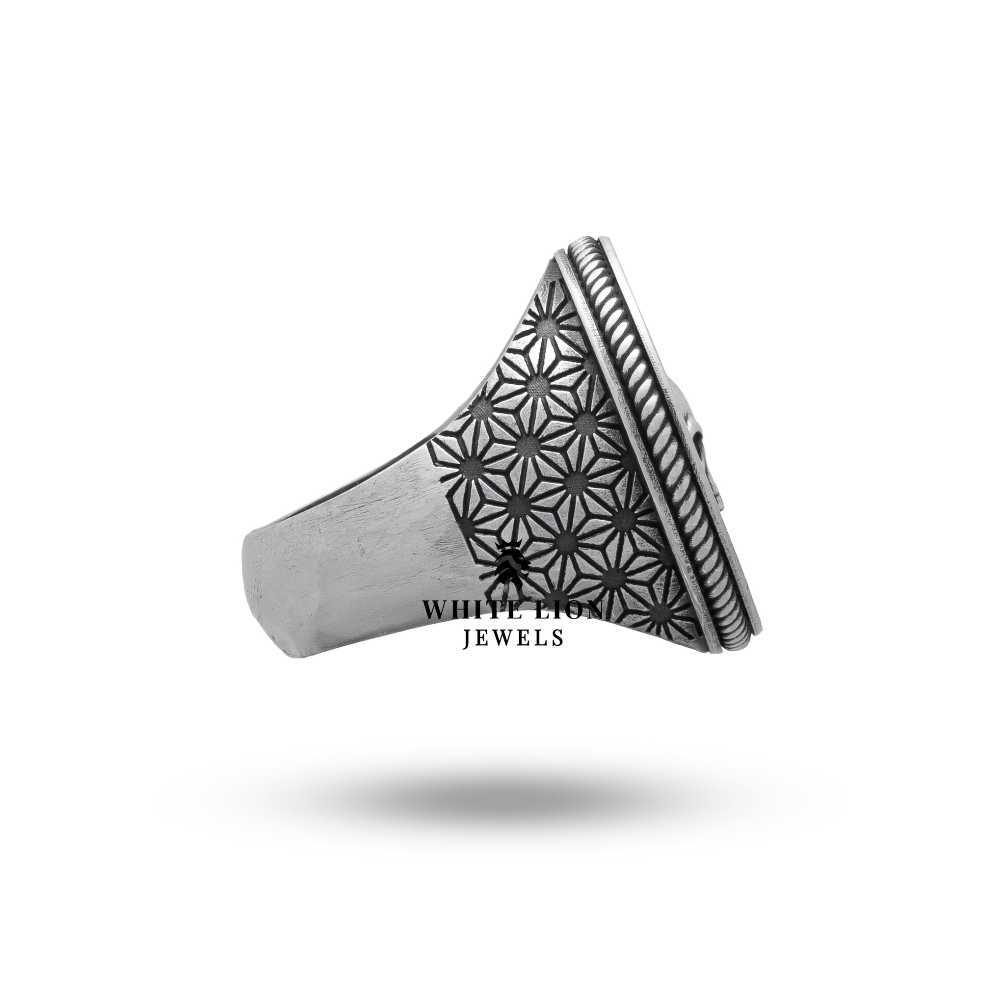 Designed with impeccable artistry, the Vegvisir Viking Compass Ring features a detailed skull motif juxtaposed with the ancient Vegvisir compass symbol, known for guiding travelers safely through the unknown. Crafted from high-grade 925 Sterling Silver, this ring boasts an oxidized finish that enhances its intricate craftsmanship. Each piece is meticulously handcrafted, ensuring that no two rings are exactly alike, which signifies the exceptional quality and dedication that goes into the making of every White Lion Jewels creation. Wear a piece of history, art, and culture all in one.