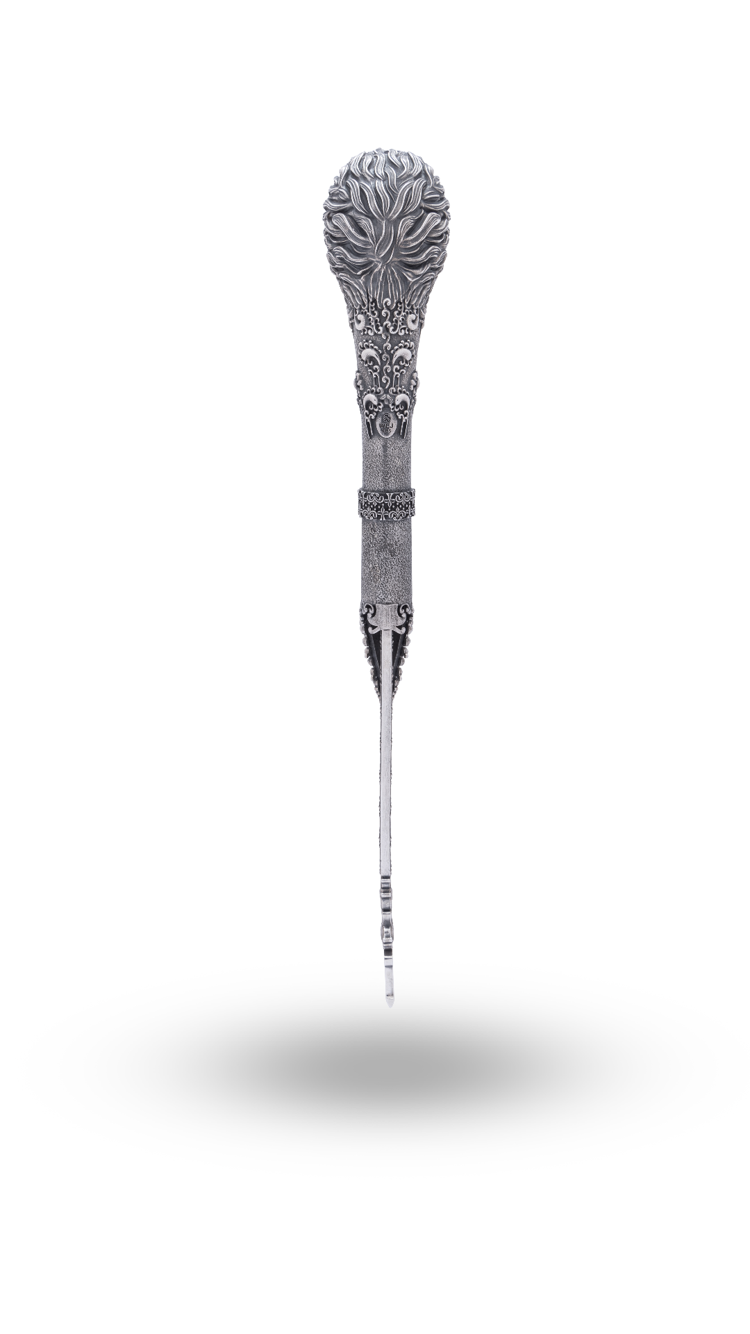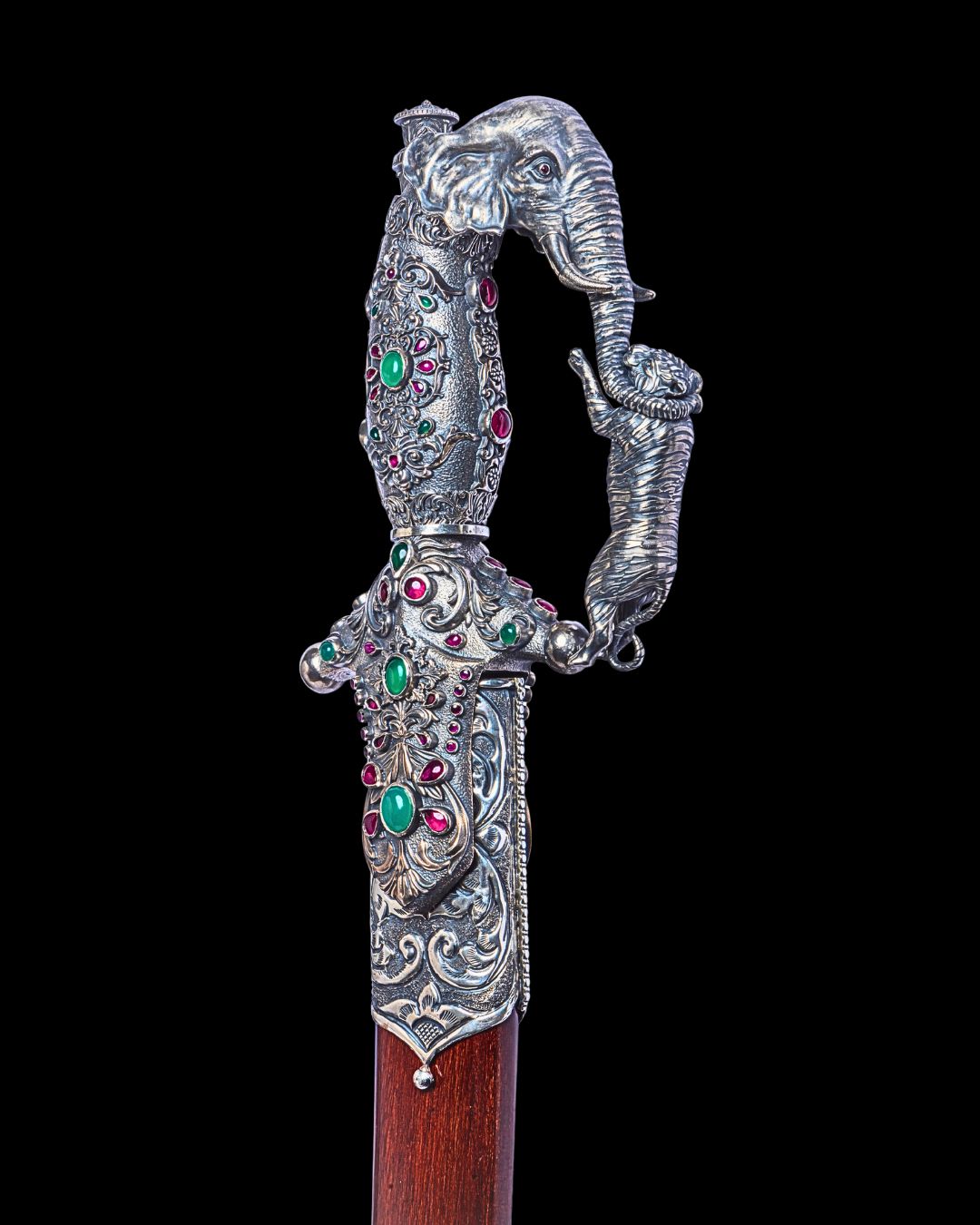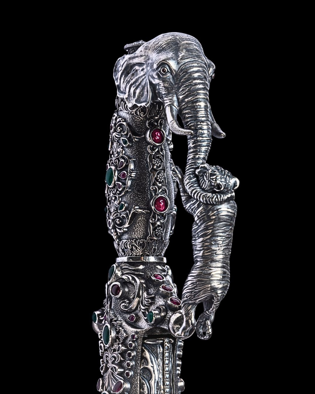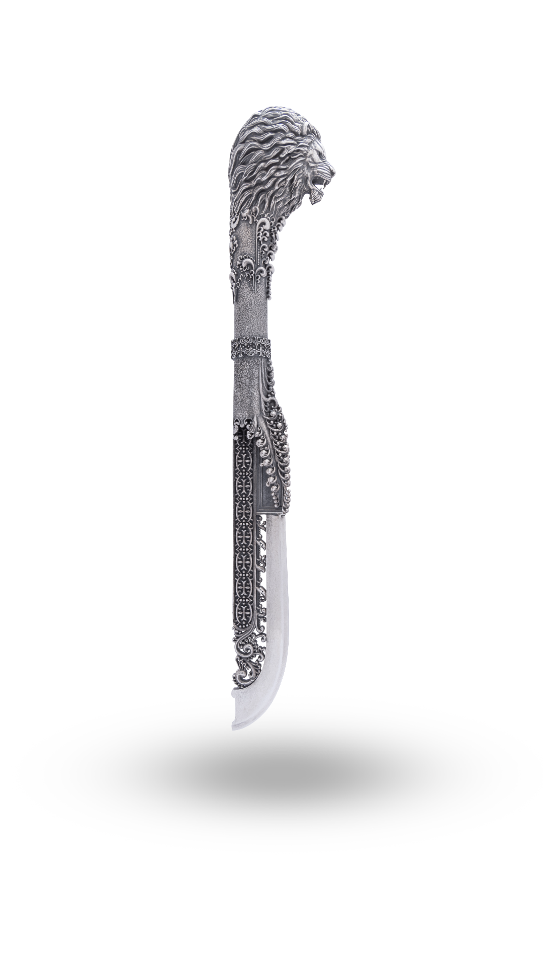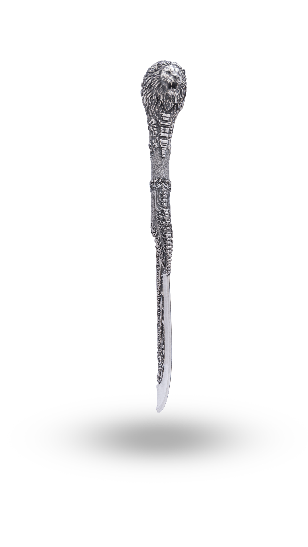 It is our honor to introduce you to Sangrami, an exquisite katar crafted from the finest silver, inspired by the majestic lion to embody power, eternal beauty, and the rich tapestry of India’s historic elements.